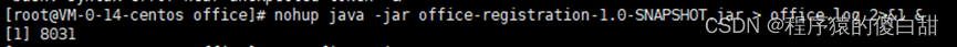 nohup java -jar office-registration-1.0-SNAPSHOT.jar > office1.log 2>&1 &
