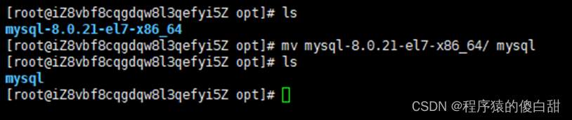 在opt目录下,将解压后的文件夹名称重新命名为mysql