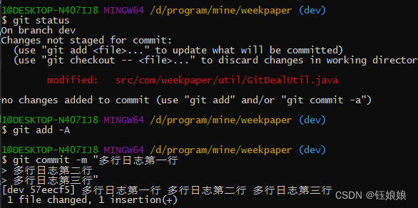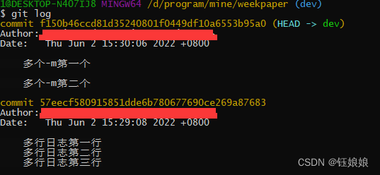 git commit -m "多个-m第一个" -m "多个-m第二个"