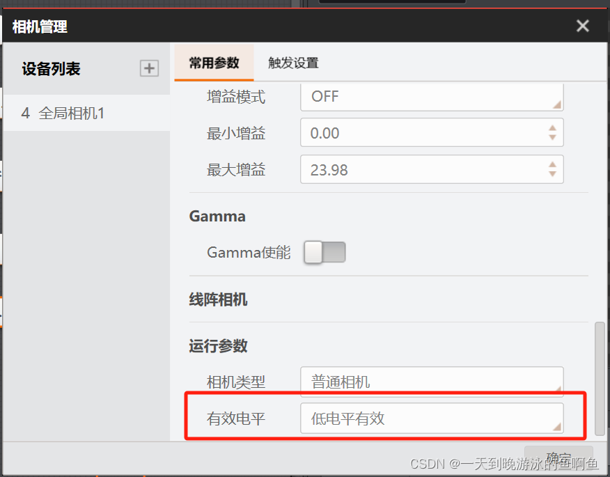 step1:相机管理中,有效电平设置为“低电平有效”,这样不输出时继电器两个接线柱之间的电压为0,继电器常开。输出时接线柱电压为12V,继电器吸合。