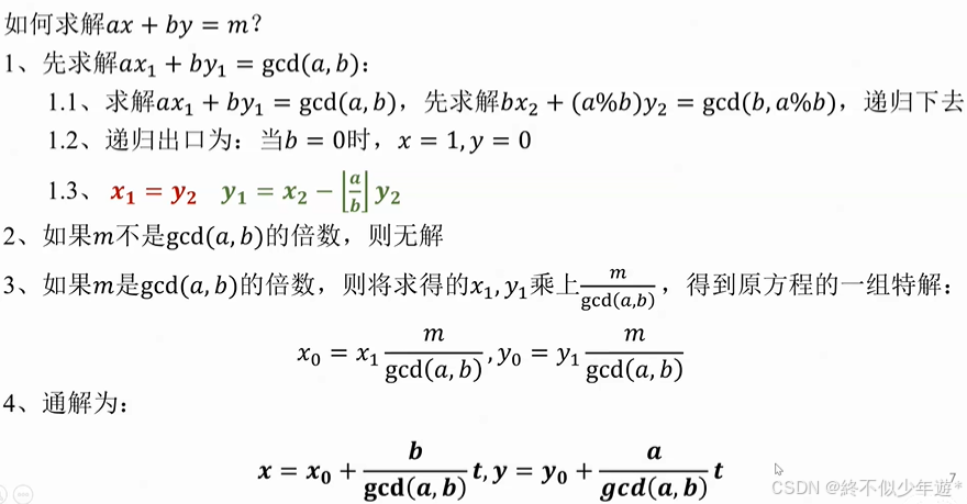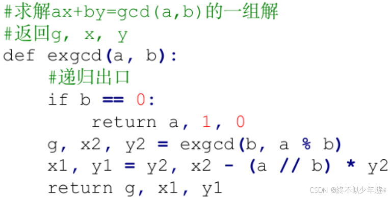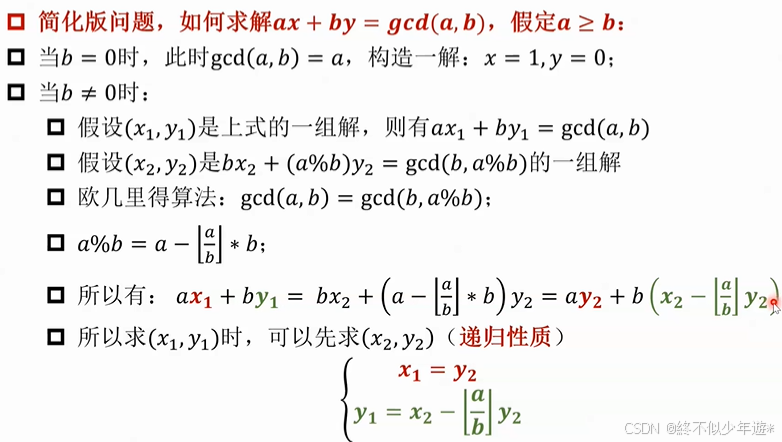 a%b = a - (a//b) * b,即y1 = x2 - (a//b) * y2