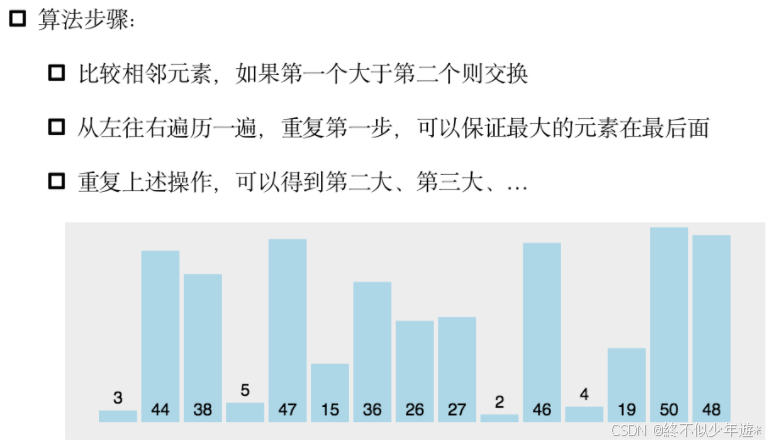 第 i 次循环:比较 a[0], a[1] 到 a[n-i-1], a[n-i]。