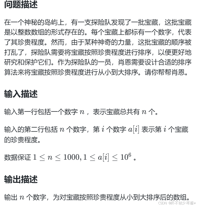 给定一个长度为 n 的列表,算法循环 n-1 次可以得到有序序列。