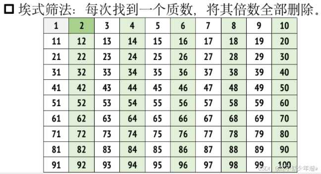 # 当前遍历到的数是质数,那么在不超过n的范围内,该质数的倍数(2倍开始)就是合数了