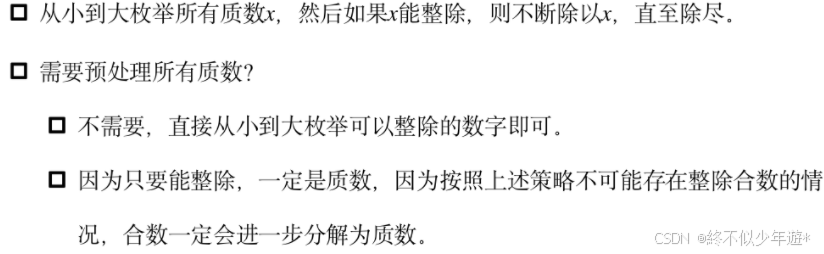 #4 如果当前数n能整除x,继续除下一个质数x,并且每次除得的数放入列表factor中
