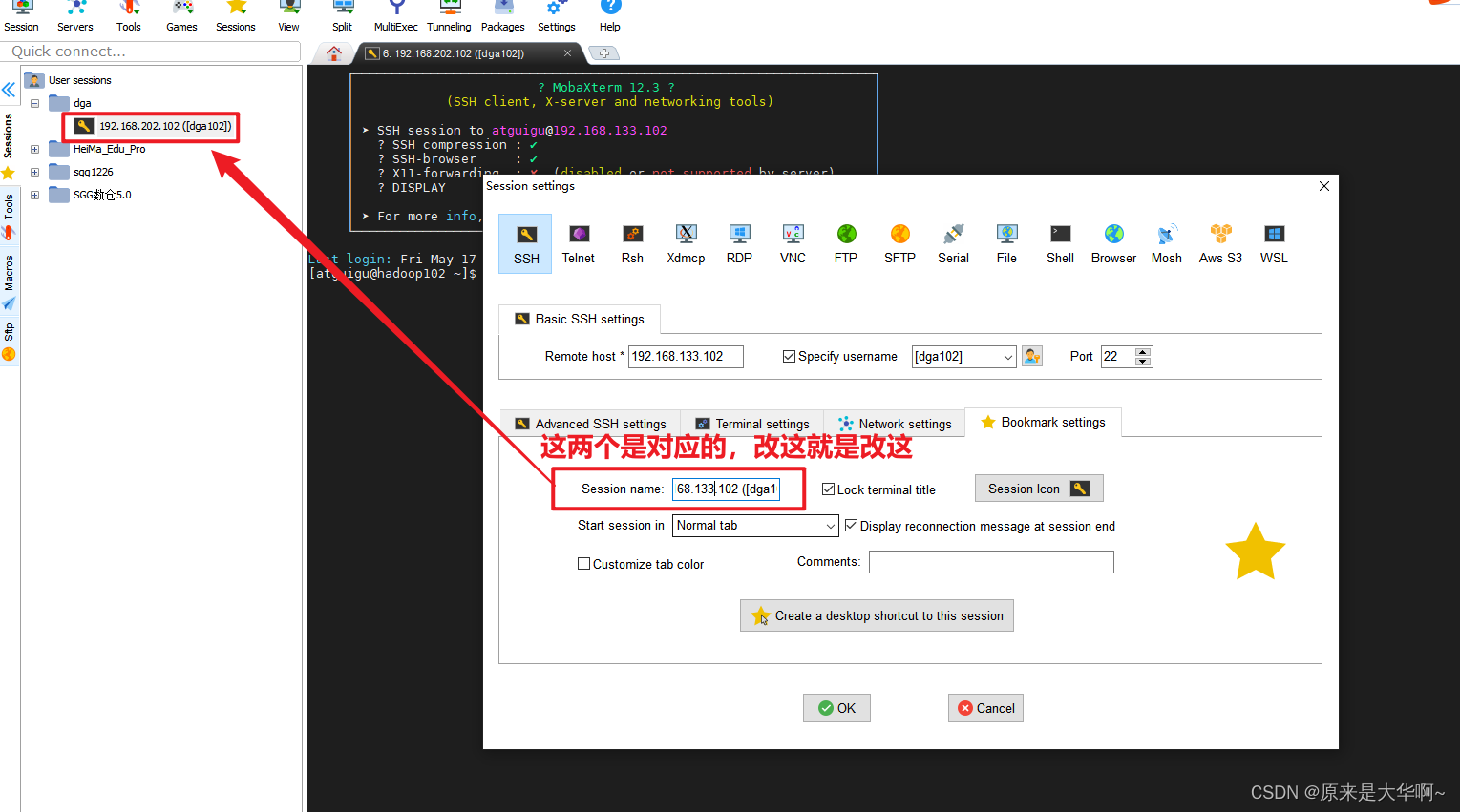 记录一个拷别人集群后连Moba不上的问题 最近要搭建数据治理平台,需要用到完整的hive和hdfs上的数据,我自己的集群上hive的数据不完整,因此拷贝别人的集群过来。上面这个登录口令是对的,是可以从VMware上直接登他的机子的。当我不改他的IP,直接用Xmoba连时,一直连不上。对当前机器:reboot。