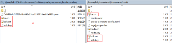 集群的链证书、机构证书、机构私钥复制项目fiscobcos-dev文件下