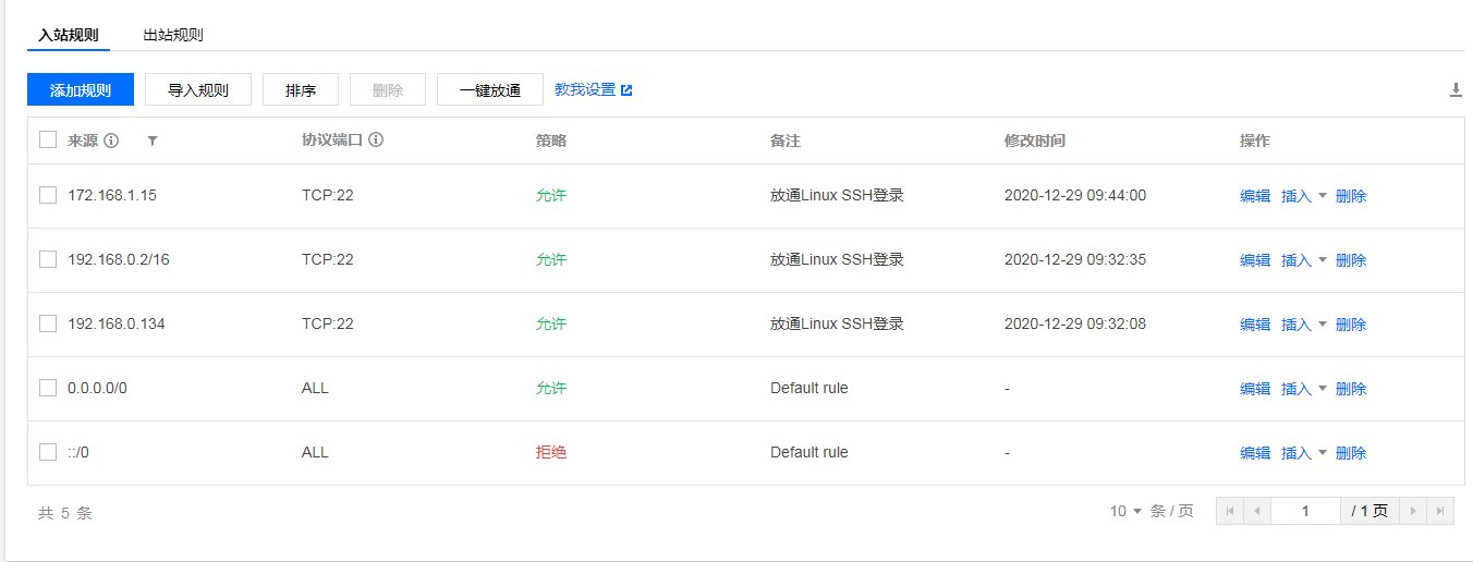 表示登入服务器的允许,如果我常用的IP是 192.168.0.12,协议端口为 22,那么我设置了这个入站规则,就只能允许这个IP和端口登录服务器。