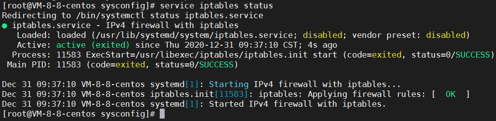 绿色的active表示 iptables 是已经运行: