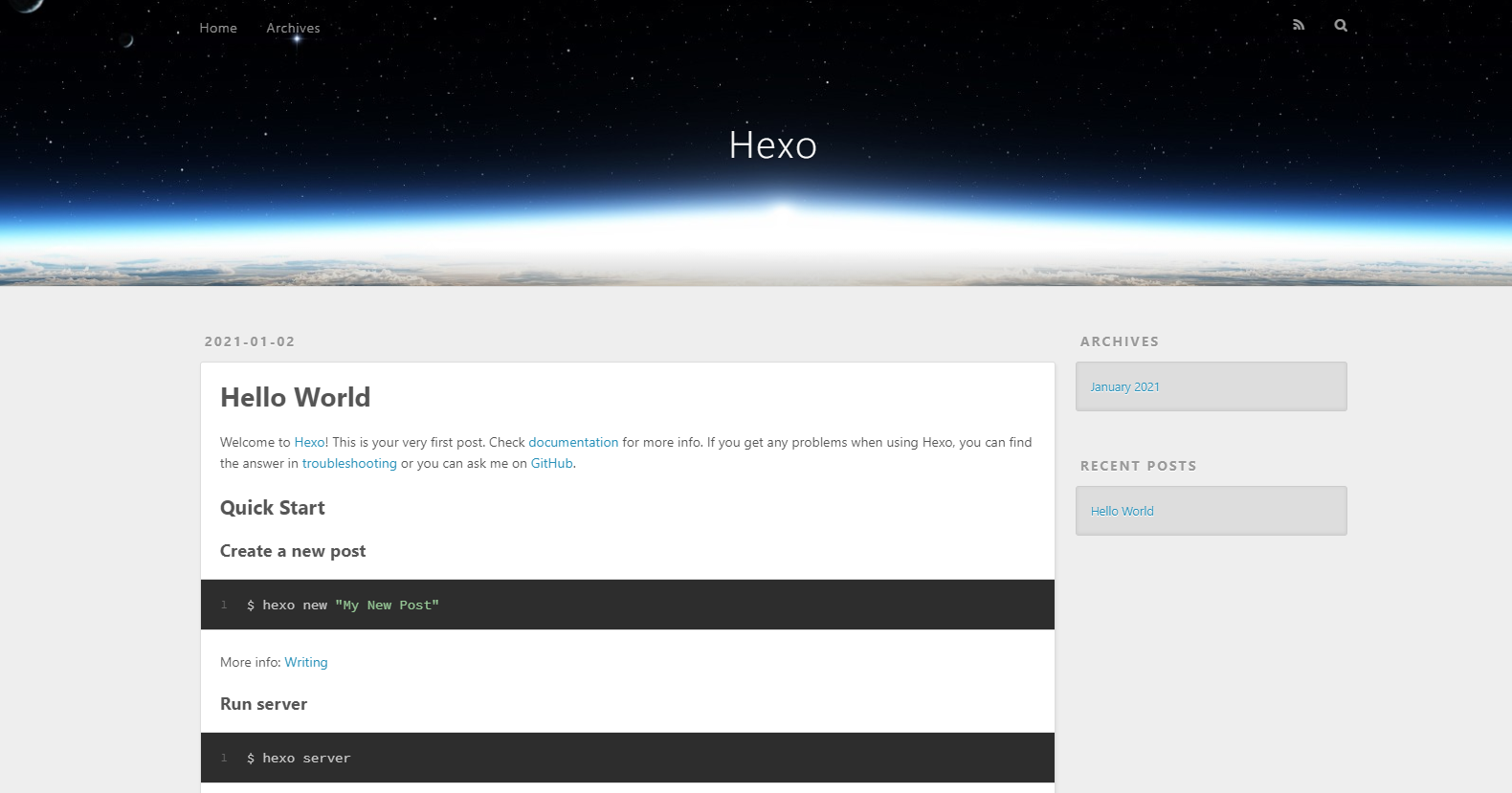 INFO Start blogging with Hexo!