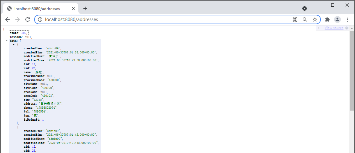 2.完成后启动项目,打开浏览器先登录,再访问http://localhost:8080/addresses页面。