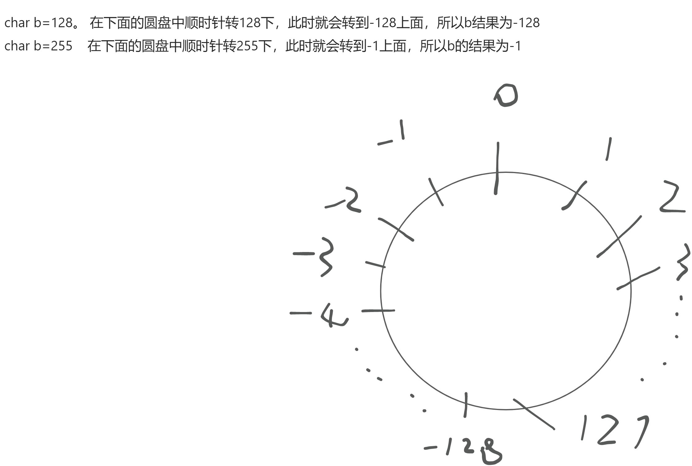 // 对于单个字节而言,有符号位,取值范围是:-128到127