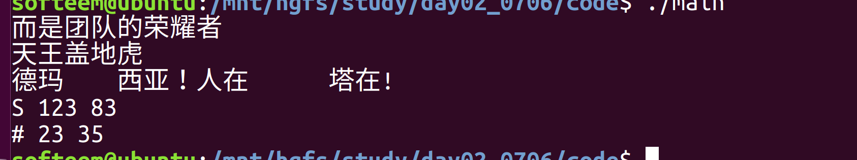 printf("\r而是团队的荣耀\n");