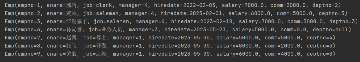 INSERT INTO `emp` VALUES ('6', '孙尚香', '业务人员', '3', '2023-05-23', '5000', '0', null);