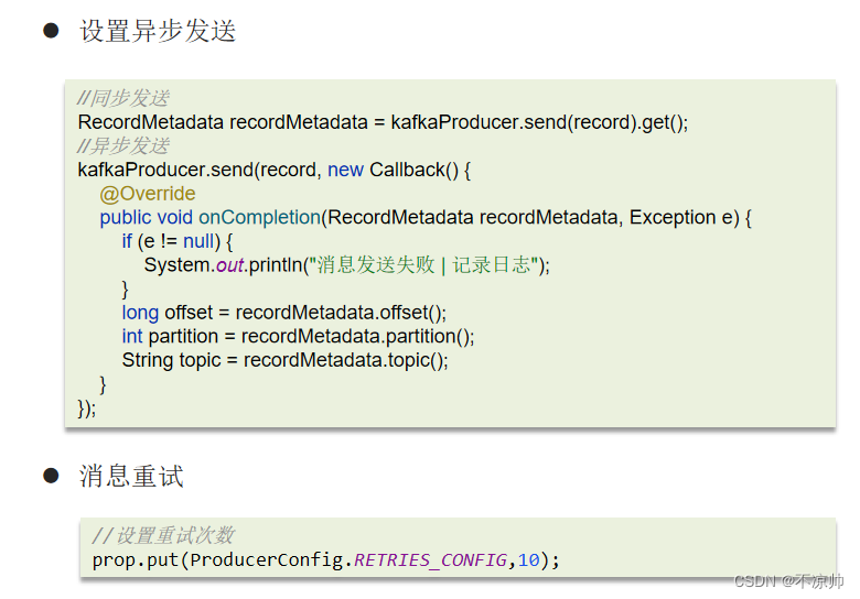 使用Kafka在消息的收发过程都会出现消息丢失 , Kafka分别给出了解决方案: