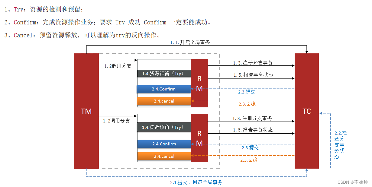TC (Transaction Coordinator) - 事务协调者:维护全局和分支事务的状态,协调全局事务提交或回滚。