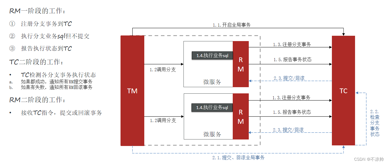 RM (Resource Manager) - 资源管理器:管理分支事务处理的资源,与TC交谈以注册分支事务和报告分支事务的状态,并驱动分支事务提交或回滚。