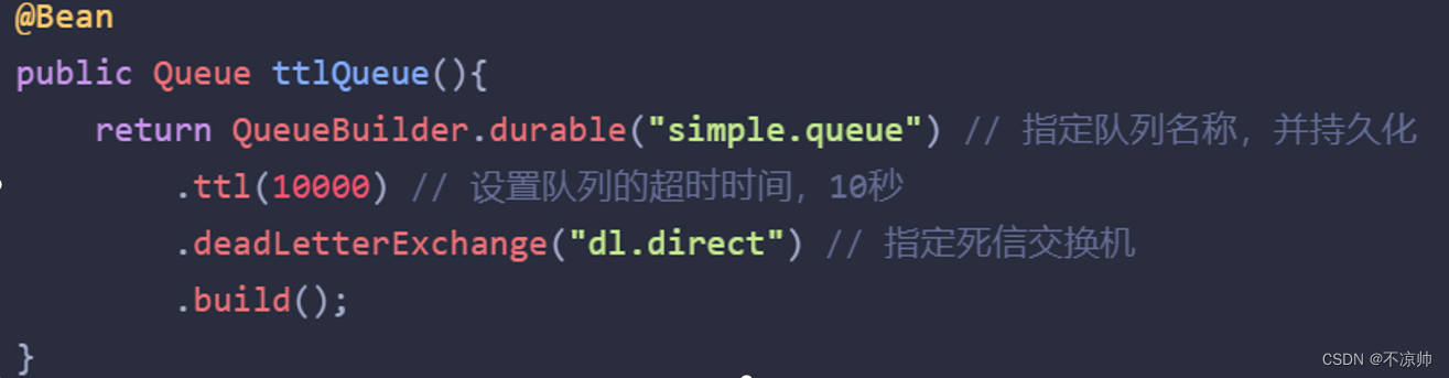 消息超时未消费就会变成死信(死信的其他情况:拒绝被消费,队列满了)