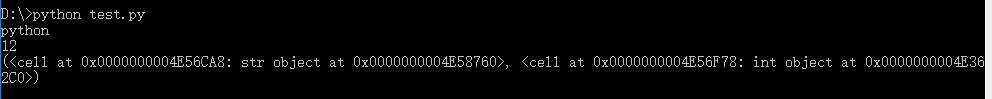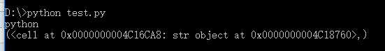 (<cell at 0x0000000004E56CA8: str object at 0x0000000004E58760>, <cell at 0x0000000004E56F78: int object at 0x0000000004E362C0>)