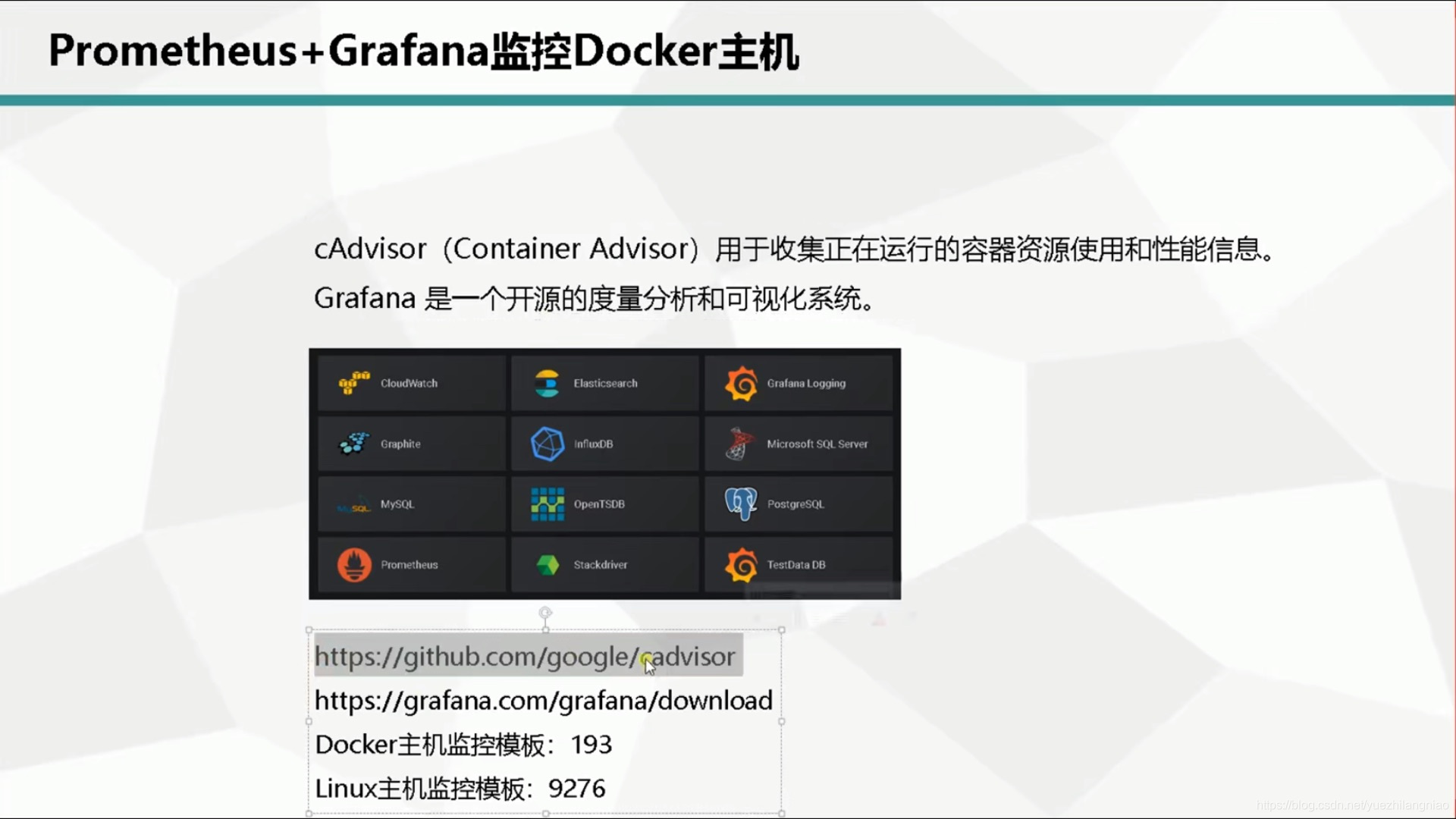 # grafana使用模板 linux 9276 docker使用 193 附 监控docker 插件和命令 暂未测试