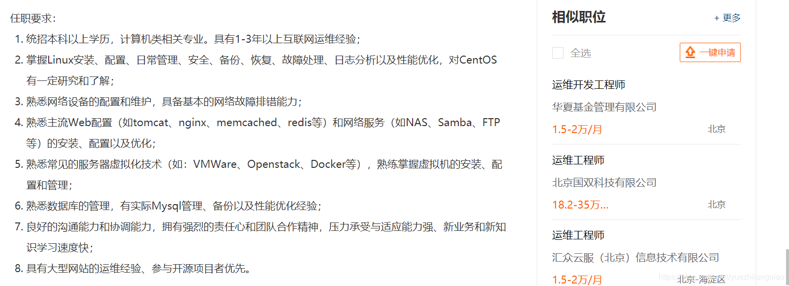 闲来无事 看了看某公司的招聘需求,忍不住吐槽几句,现在的很多传统企业都是重业务、轻运维的。。。