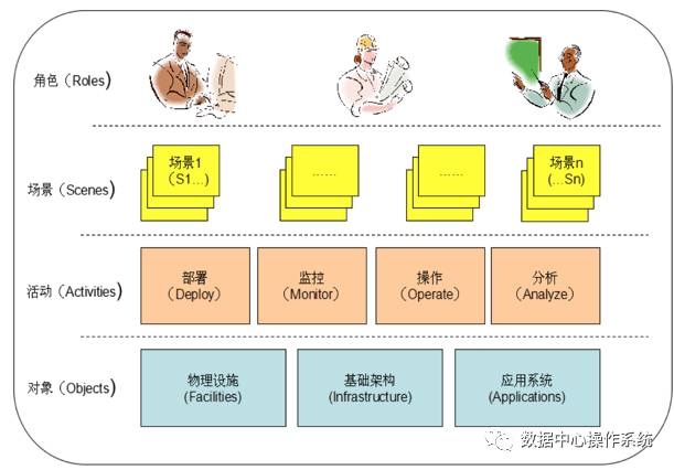 根据《工行侯志荣:一体化和自动化运维体系探索》一文提出的OASR模型,用户对应角色,前台对应各种运维场景所需要的场景功能平台,后台对应的应该是基础的能操作运维对象的业务活动。