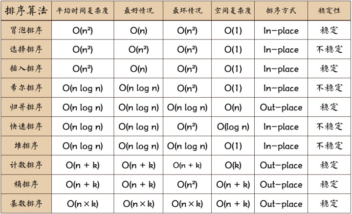 最后是所有排序算法的图表总结(图片来自于网络):