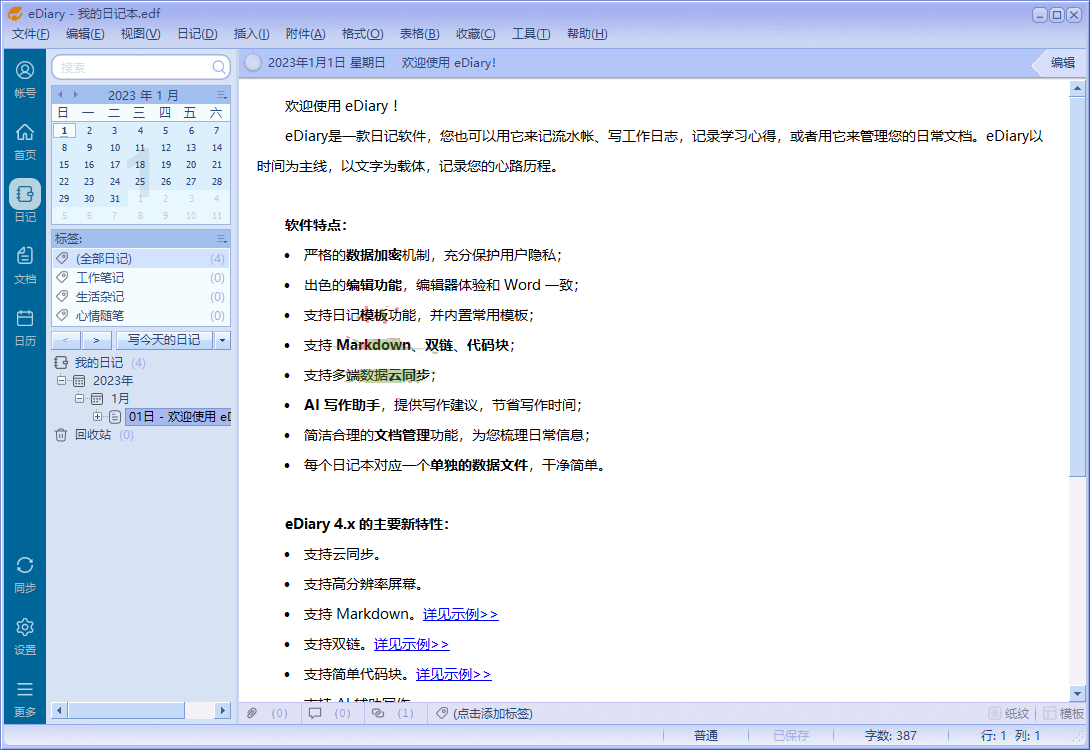 [软件名称]: eDiary v4.3.8 免费电子日记软件