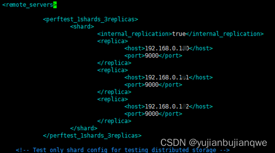 <perftest_1shards_3replicas>标签是自定义的集群名称。通常,1shards,表示1个分片,3replicas表示每个分片有3个副本。