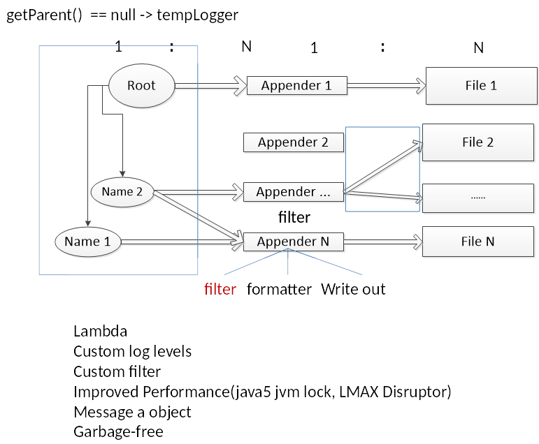 若使用XXX.class,且类名未在xml中定义,则按照包分割符'.'和类分隔符'$'的路径生成一个树枝的logger,并返回叶子节点的logger