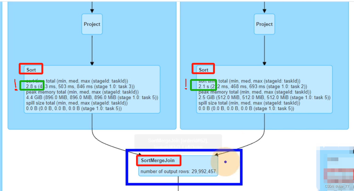 这里两个表数据量分别为2G和4G,比较小,分桶仅为5个,效果差异不是特别明显,如果是上T数据,分桶较多,排序时间缩短效果会更明显。