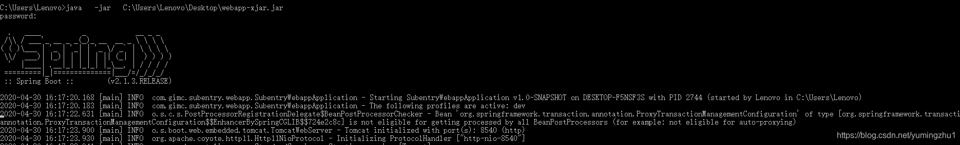 // 命令行运行JAR 然后在提示输入密码的时候输入密码后按回车即可正常启动