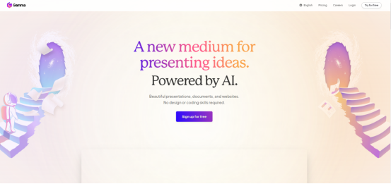 Gamma是一个智能PPT生成工具,只需要提供一个主题或者大纲,它就能在几分钟之内生成一篇结构完整、设计专业的PPT或者网页文档,省去了手动排版的麻烦。
