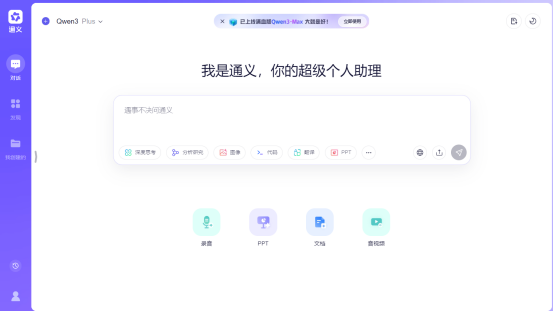 由阿里云研发的大语言模型,是一个综合能力非常强的AI大模型工具,可以协助你完成文字创作、文本润色、编程辅助、多语言翻译等多种任务,特色是集成了如深入研究,图像生成和深度思考等高级模块,非常全能。