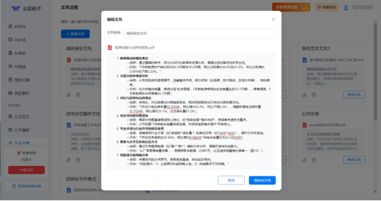 系统会自动分析这篇范文的:用词习惯、句式结构、行文逻辑、公文语气与格式规范