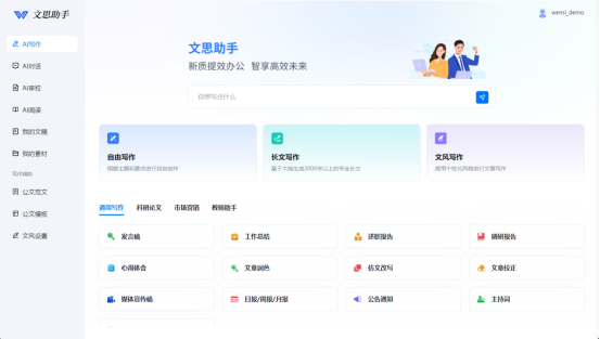 打开浏览器,搜索 “文思助手”,进入官网后找到 【文风写作】 功能入口。