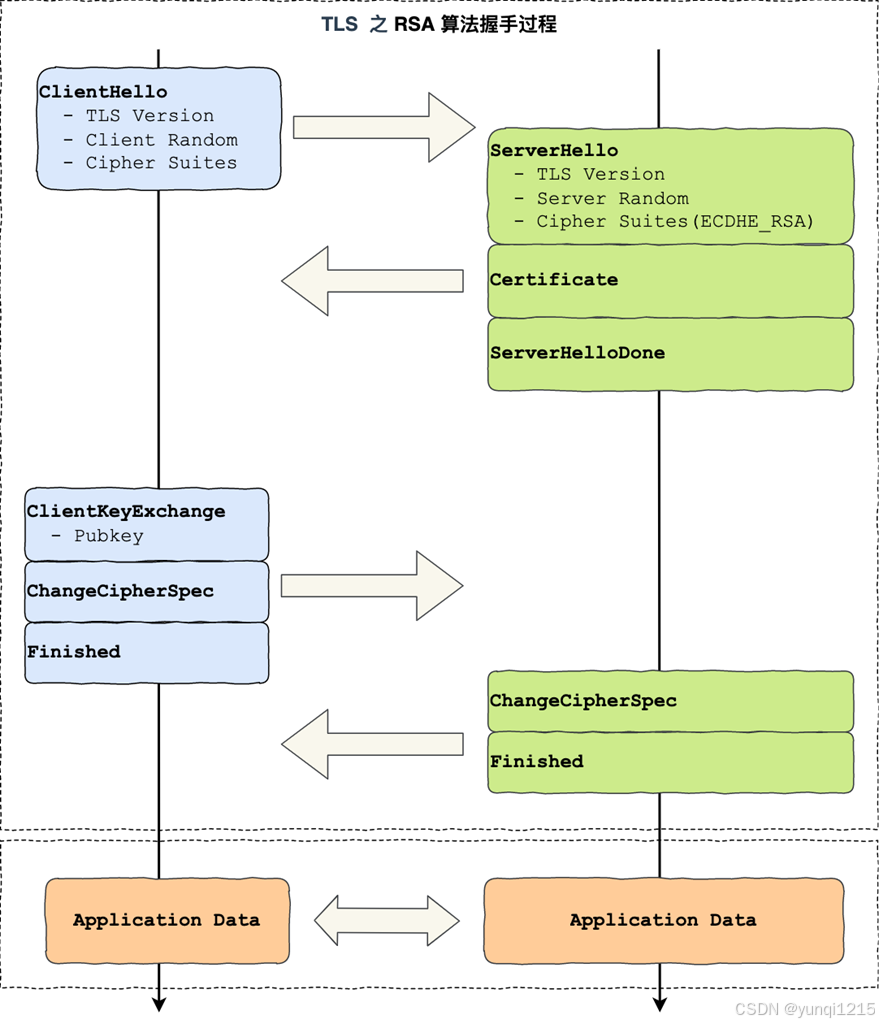 服务器也是同样操作下,发change cipher spec和encrypted handshare message消息,如果双方都验证下加密和解密没问题,那么握手正式完成。最后就用会话密钥和加解密http请求和响应了。