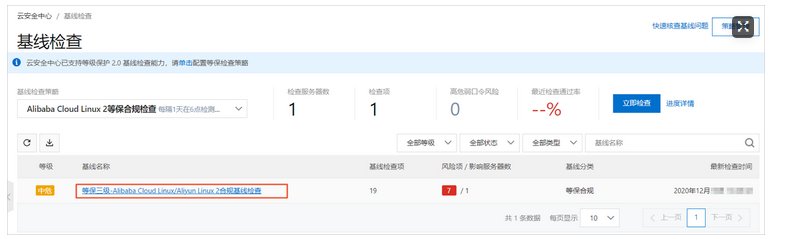 检查完毕后,在基线检查页面的列表中,单击基线名称。