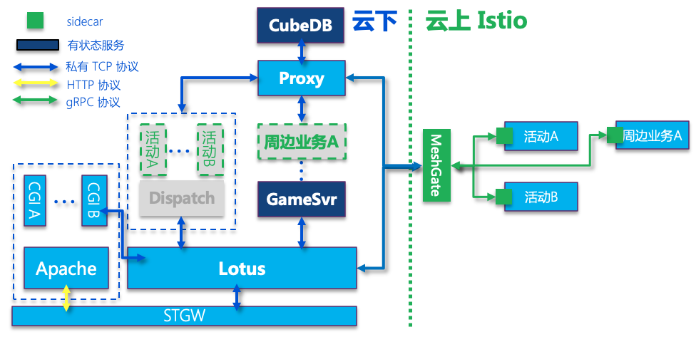 但心细的同学可能会发现,服务上了网格之后,业务和 Client 侧的通信需要从自研接入集群 Lotus 转发至 MeshGate,并做多次的协议转换以及转发,导致通信链路的性能开销以及时延加大。而对于游戏中时延敏感的业务场景,其中时延的损失,是难以接受的。因此我们迫切需要一个网格内的网关接入服务,接下来就介绍一下网关接入的改造方案。