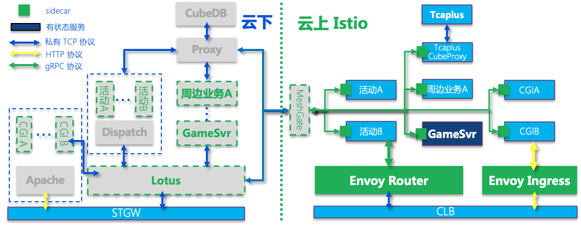 GameSvr 上云之后,整体架构变迁如上图所示,接下来再看 CGI 是如何上云的。