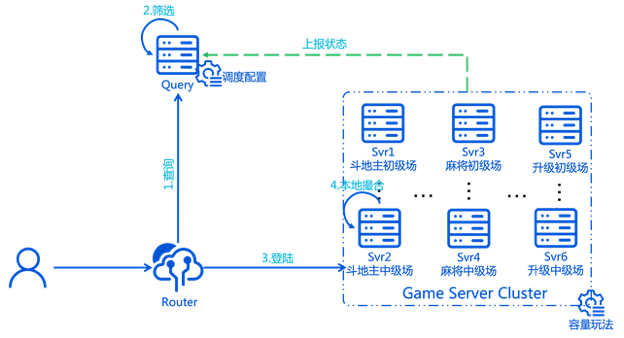 实现了灵活可靠的单局调度能力;通过简单的配置,即可实现单局根据不同的属性,调度到不同的 Set 中。且在调度的过程中,也会考虑负载和服务质量,最终实现整体调度的较优选择。