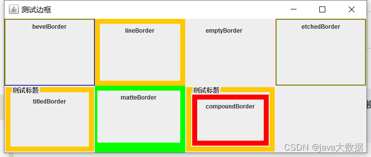 TitledBorder titledBorder = new TitledBorder(new LineBorder(Color.ORANGE,10),"测试标题");
