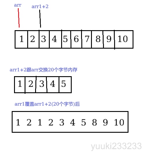 memcpy(arr1 + 2, arr1, 20);