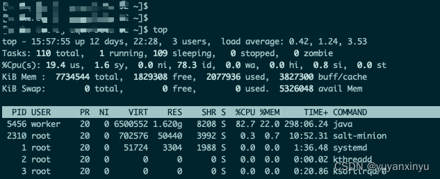 java应用服务器cpu使用率高或内存使用率高 3. 将线程id转换为16进制数值。printf "%x" 线程id(TID)4. 查询jvm堆栈信息 jstack PID |grep 16进制线程id。2. top -Hp 进程id(PID),查询进程中线程情况。查询应用错误日志,大概率为查询数据量过大,或者死循环问题。1. top 命令,查询系统进程。应用服务器告警cpu使用率高。