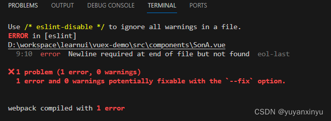 vscode eslint报错 Newline required at end of file but not found vscode编译vue代码时报错 Newline required at end of file but not found。