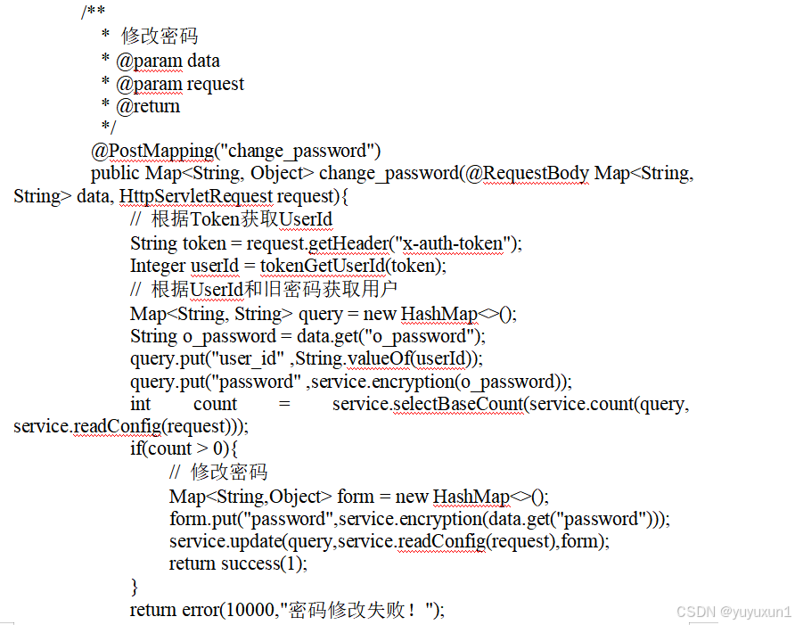 密码修改的逻辑代码如下所示。