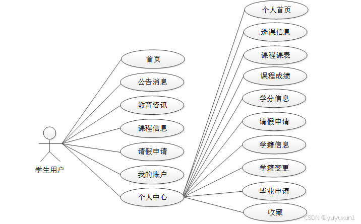学生用户用例图如下所示。
