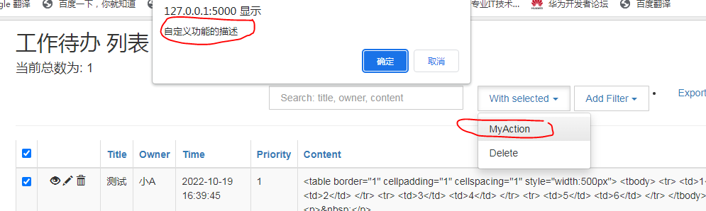 @action('myaction', 'MyAction', '自定义功能的描述')