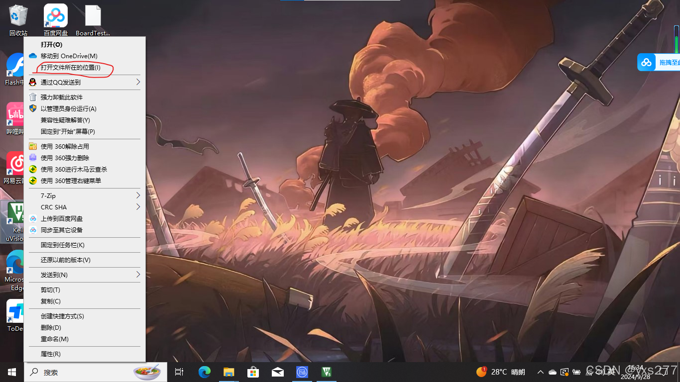 那么和编译出来的单片机代码相连接的文件在哪里呢?我们右击keil选择“打开文件夹的所在位置”。