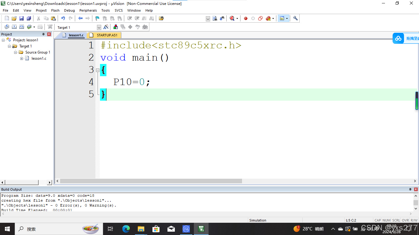 右击source group选择包含STC的文件夹,但STC89C5xRC.h已被剪切到桌面,那么我们开始编译。